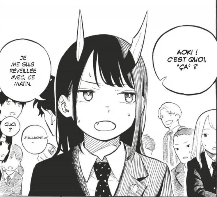 Que feriez-vous si, un beau matin au réveil, vous découvriez deux cornes qui ont poussé sur votre tête ? Pour Aoki Ruri, notre protagoniste et héroïne du manga, la réponse est complètement évidente : on va tout simplement au lycée, comme tout lycéen qui se respecte. C’est ainsi que commence ce premier volume, et bien que ça m’a laissé perplexe un instant, j’ai tout de suite accroché à l’ambiance.